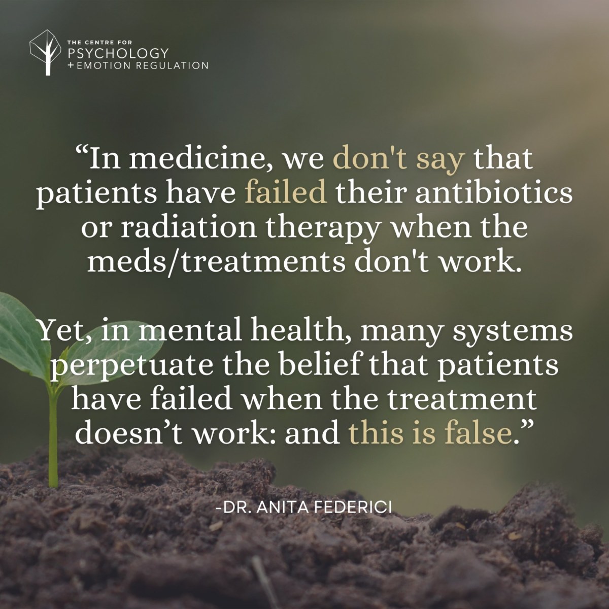 So why on earth is there still such a prevalent view that there is something “wrong” with the individuals who don’t respond adequately to psychological treatment? This type of thinking must change.