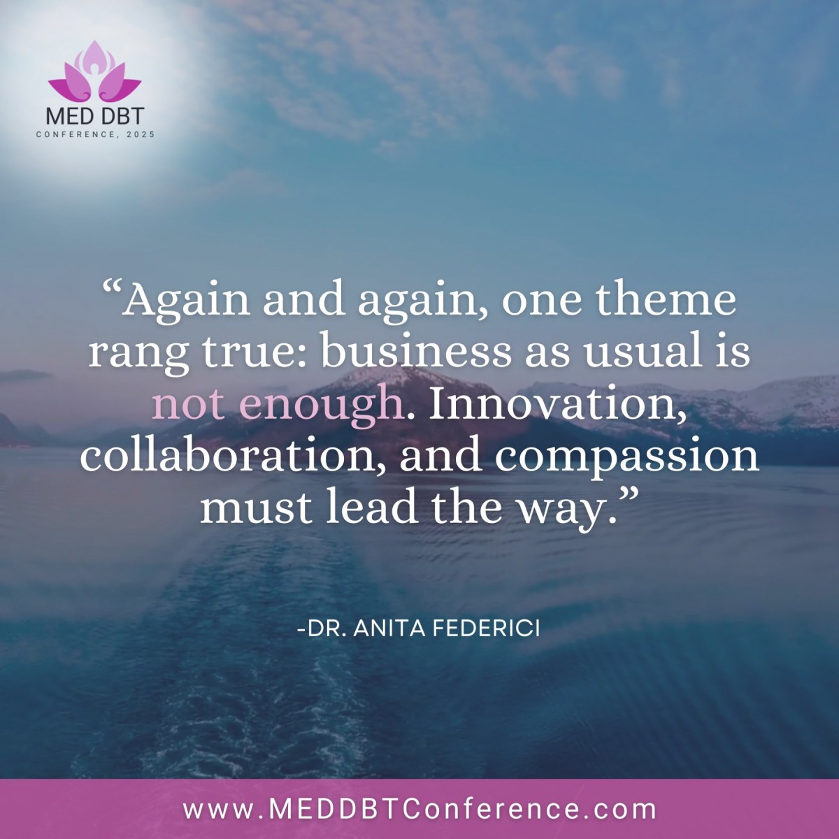 Her keynote embodied what makes her such a force in this field: evidence-based expertise combined with fierce compassion and deep respect for clients. I will always be grateful for her leadership and her willingness to shape MED-DBT with me and so many others.